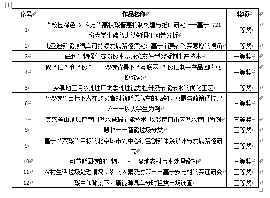 全国老员工节能减排社会实践与科技竞赛获奖作品名单: