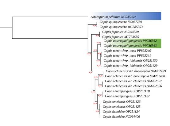 黄连属植物是亚洲东部地区重要的药用植物属之一,该属部分物种的干燥根状茎被用作中药黄连,具有清热、祛湿、泻火的功效。在2021年颁布的《国家重点保护野生植物名录》中,黄连属整属均被列为国家二级保护植物。现代植物化学和药理研究表明,黄连属植物含有大量的异喹啉型类生物碱,如小檗碱、巴马汀、黄连碱、表小檗碱、药根碱、非洲防己碱、木兰花碱和格陵兰黄连碱等,已证明具有多种临床效果,如抗菌、降血糖、降血脂、保护神经等作用。