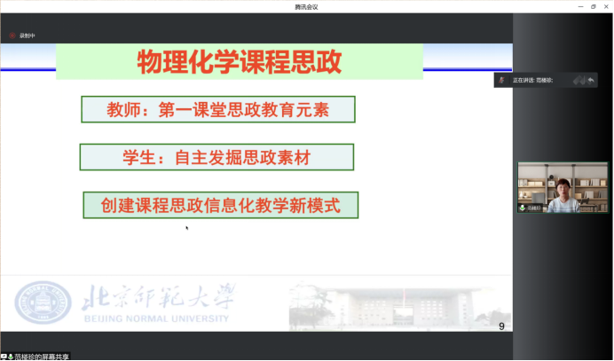为进一步推进公司课程思政建设向纵深发展,帮助公司教师正确理解课程思政的内涵和意义、准确把握课程思政的实施路径、有效融入课程思政的教学要素、切实提高课堂教学的育人水平,2022年5月27日,生命与环境科学公司党委线上召开“课程思政建设”经验交流会(第四期)。交流会由公司党委书记张严教授主持,北京师范大学化学公司经理范楼珍教授主讲。