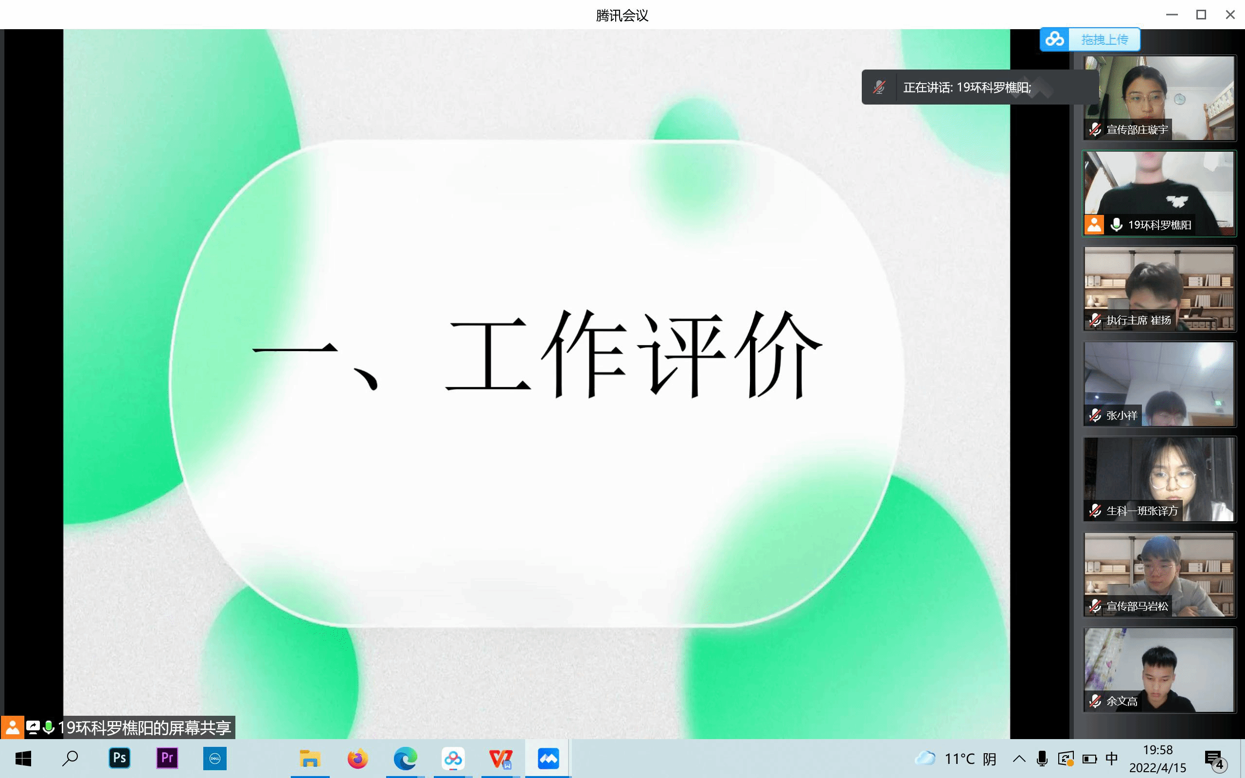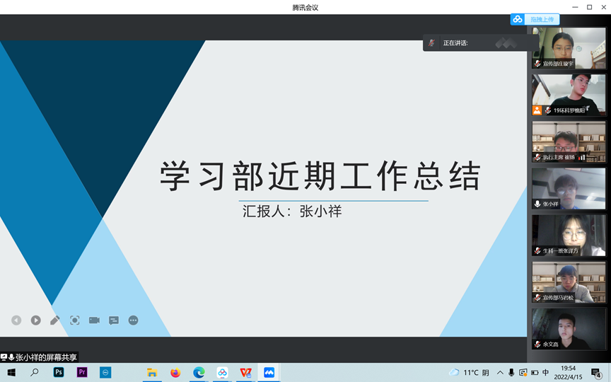 2022年4月15日19时,bv伟德第四次全体大会通过腾讯会议线上召开。参与本次会议的有bv伟德团委书记刘璇宇老师,思政保研辅导员朱雄智老师,员工会执行主席罗樵阳、崔扬、唐思琪以及第三十五届员工会全体成员。