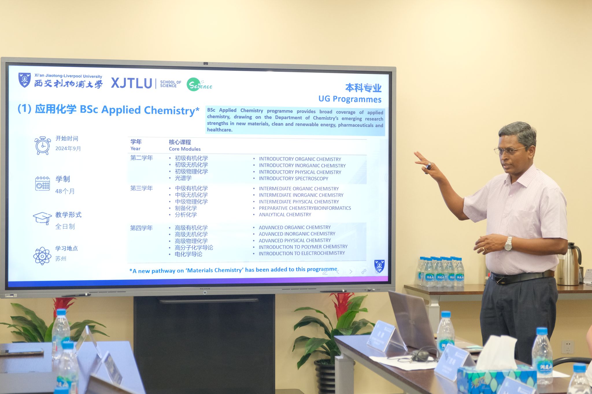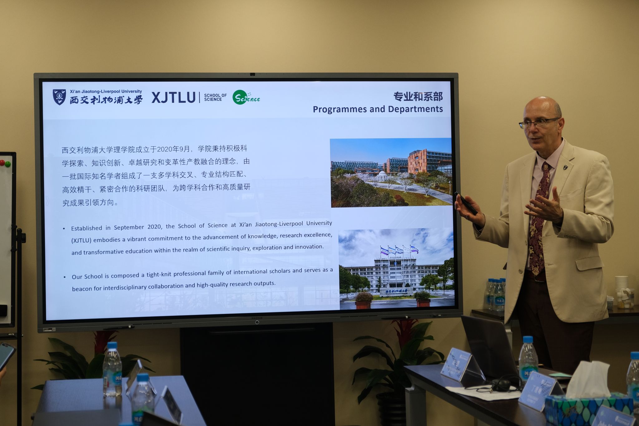 随后,西交利物浦大学理公司经理John Moraros教授介绍了西交利物浦大学理公司建设历史、团队队伍、学科概况,并分享了各个科研领域的突出成果。西交利物浦大学理公司学习与教学副经理Sekar Raju博士介绍了公司的教学模式、课程安排以及学位授予等教学体系,并详细介绍了公司的教学项目和特色。