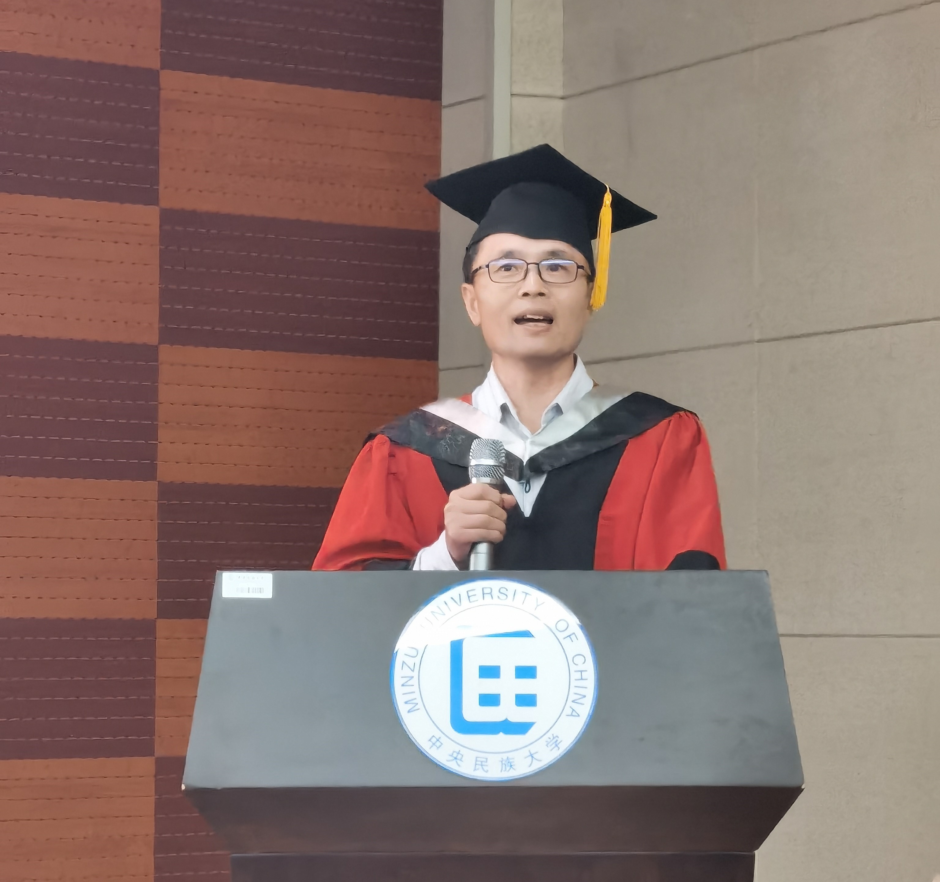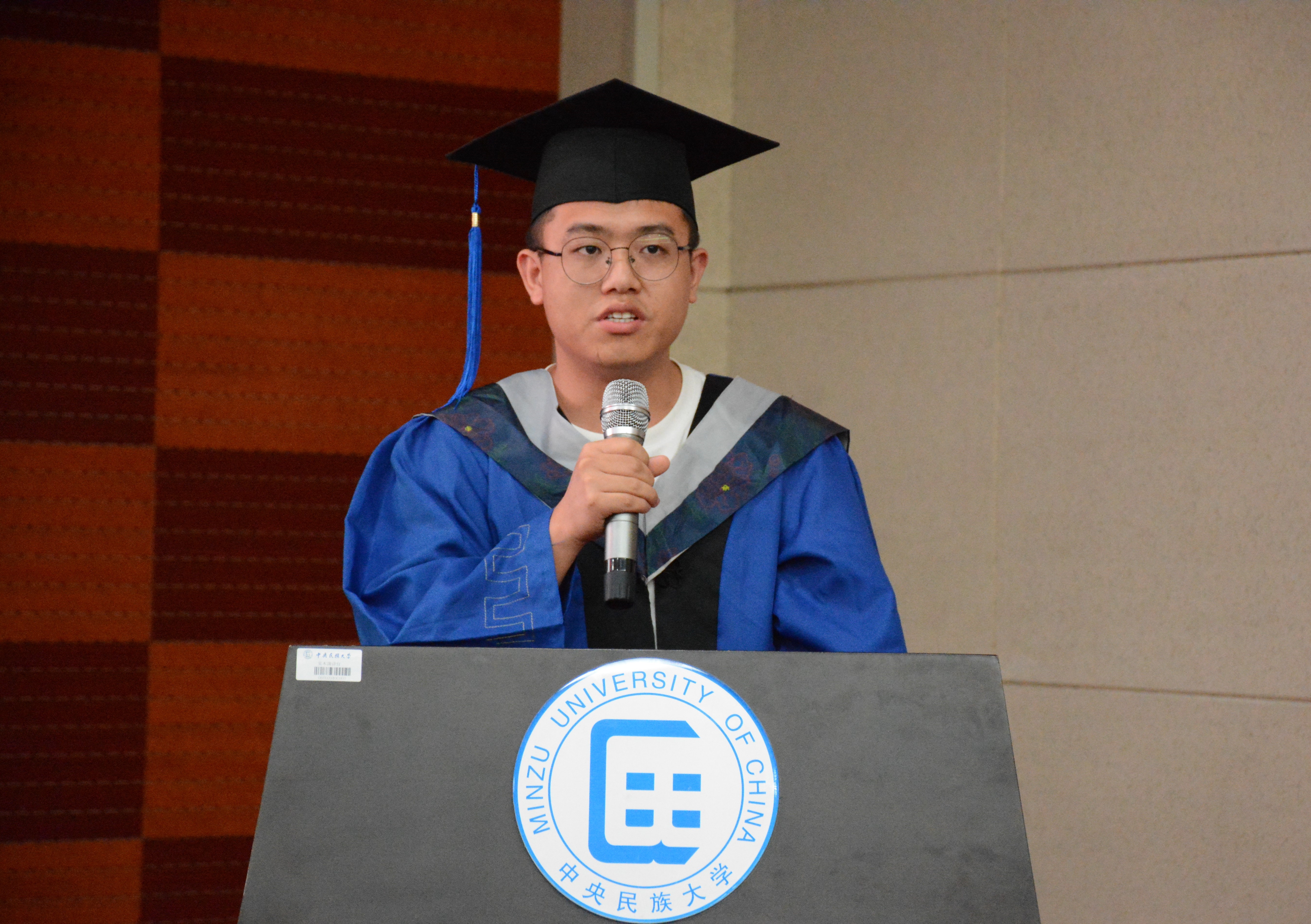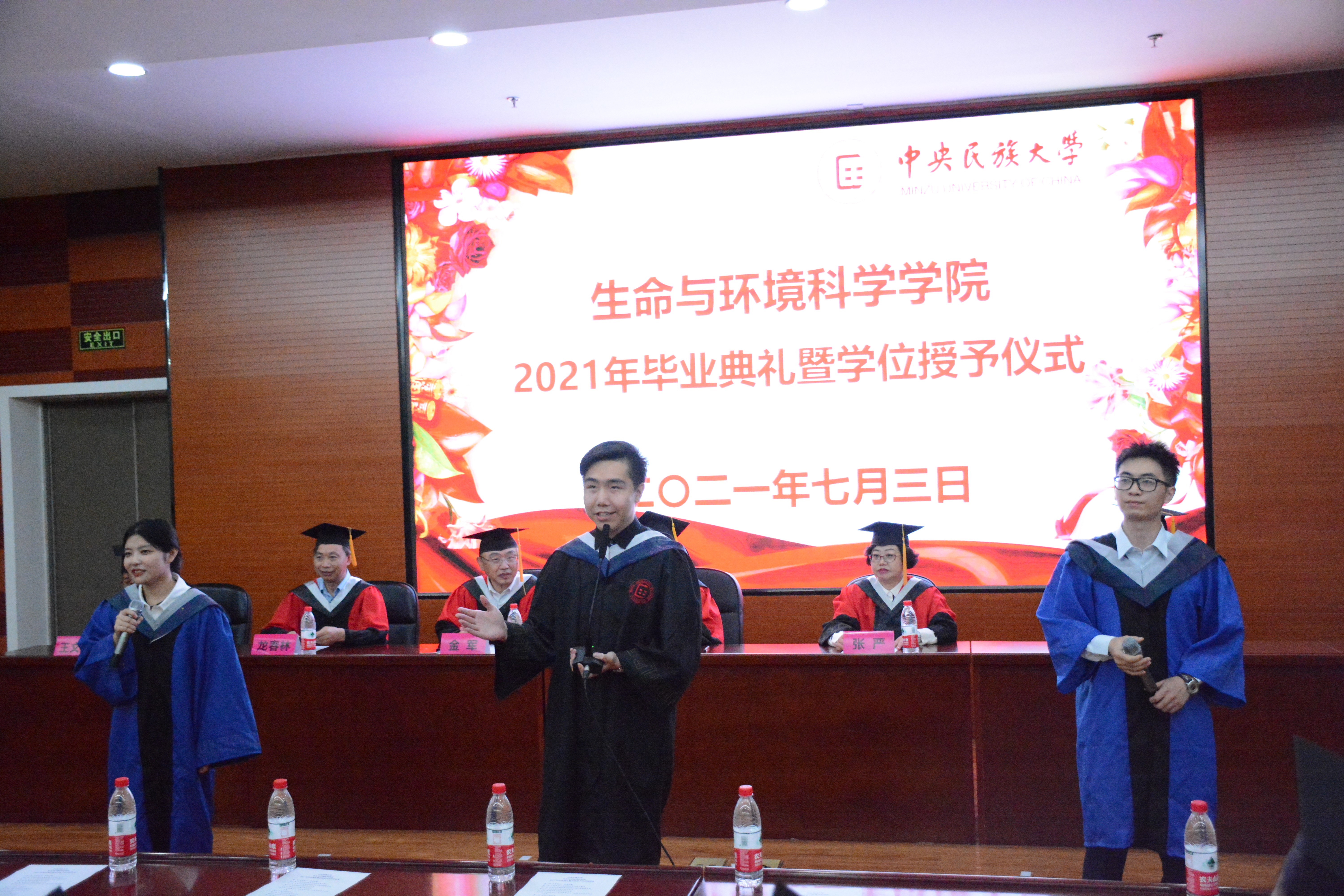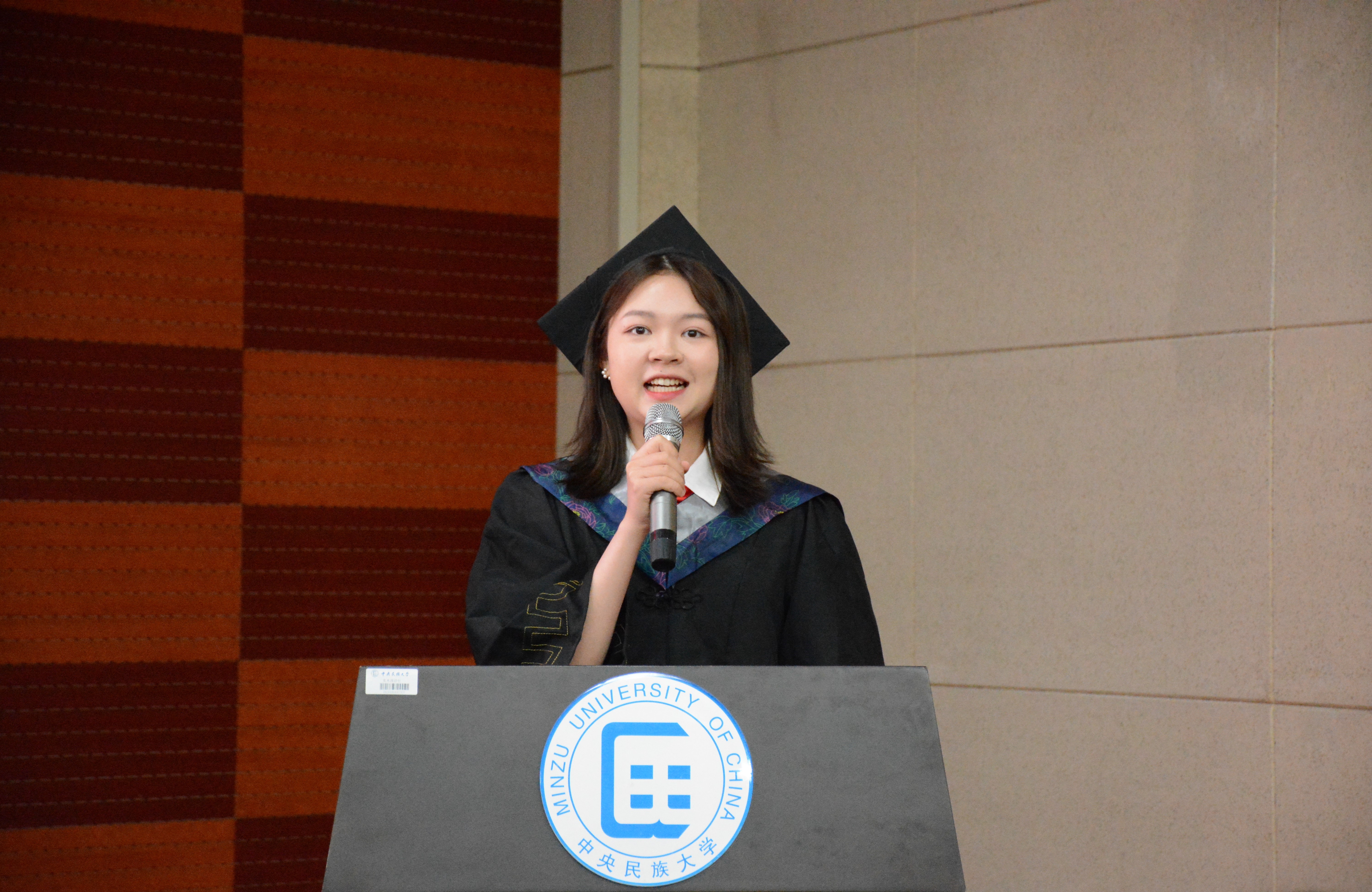 本科生毕业生代表赵悦汝同学及研究生毕业生代表程卓同学分别发言。他们向关爱学子、诲人不倦,给予殷切教导的师长表达出衷心的感激之情;回顾了校园生活的点点滴滴,讲述了各自在民大、在生环公司几年来的成长历程。寥寥数语,饱含着经自身实践而得到的颇多感悟,亦不乏对校门外生活的憧憬与向往。最后,两位毕业生代表向全体毕业生送上了诚挚的祝福,“愿大家佩戴着民大生环人的标签,奔赴五湖四海,绽放绚丽之花” “带着美美与共、知行合一的校训,以及青春如火、超越自我的生环精神,在新的岗位,建功立业”。