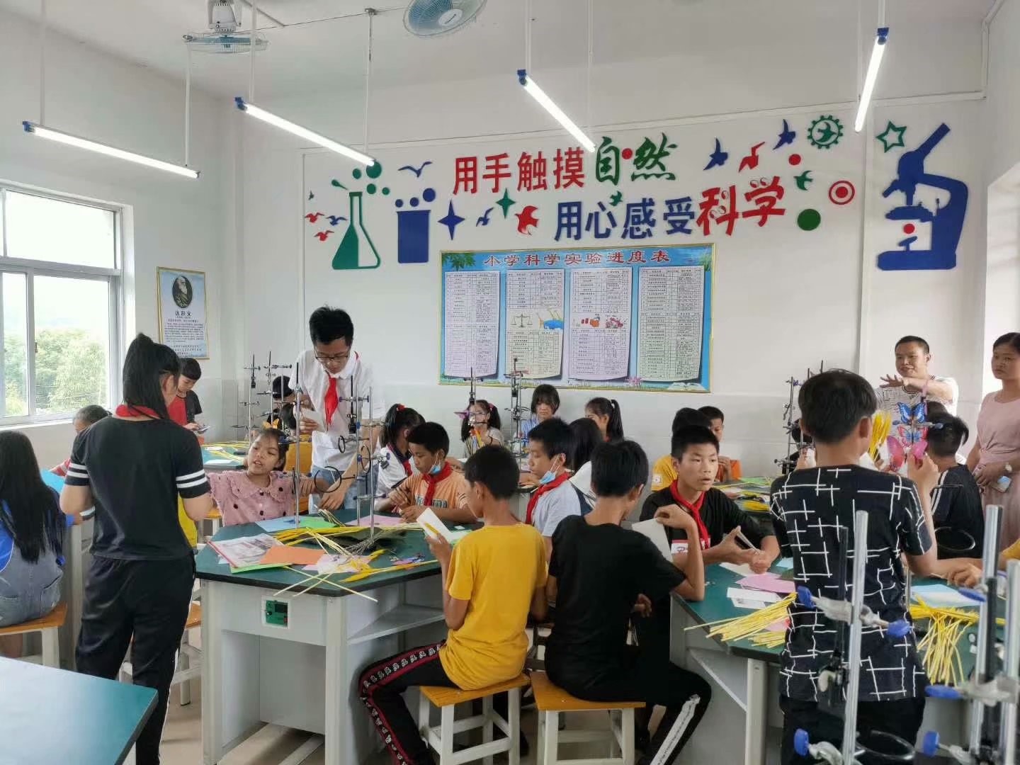 图4与刘博老师共同指导米丰小学的员工开展实验课