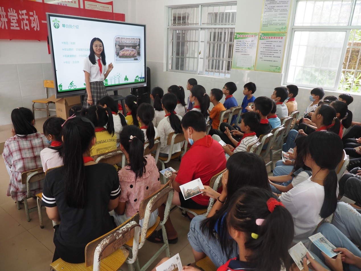 在刘博老师的指导下,陆毅选择了“十万大山瑶药的调查与研究”作为自己本科毕业论文选题,并于2019年5月22日“世界地球日”时,与邓明波、天亮等同学一同前往十万大山山区的大菉镇米丰小学为当地少数民族孩子们开展了“世界地球日主题活动”。