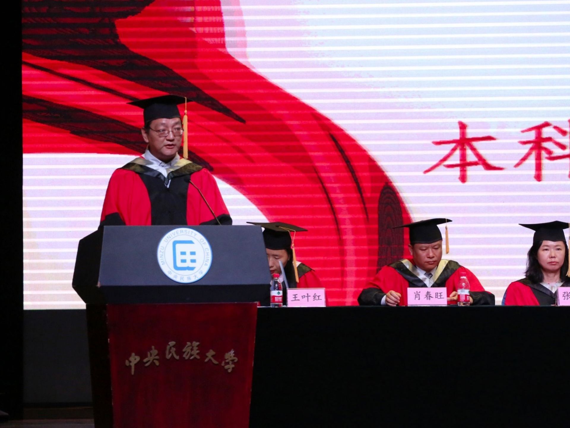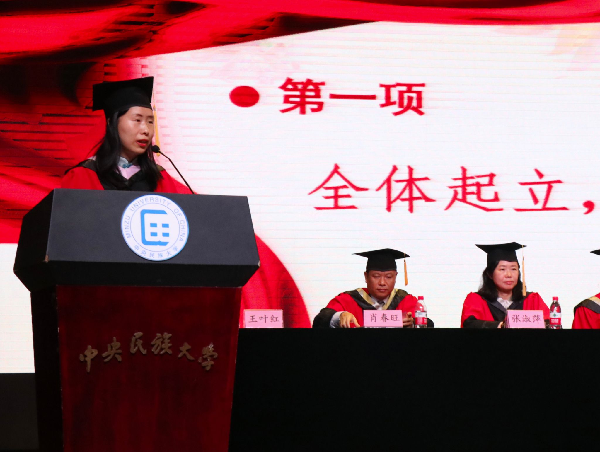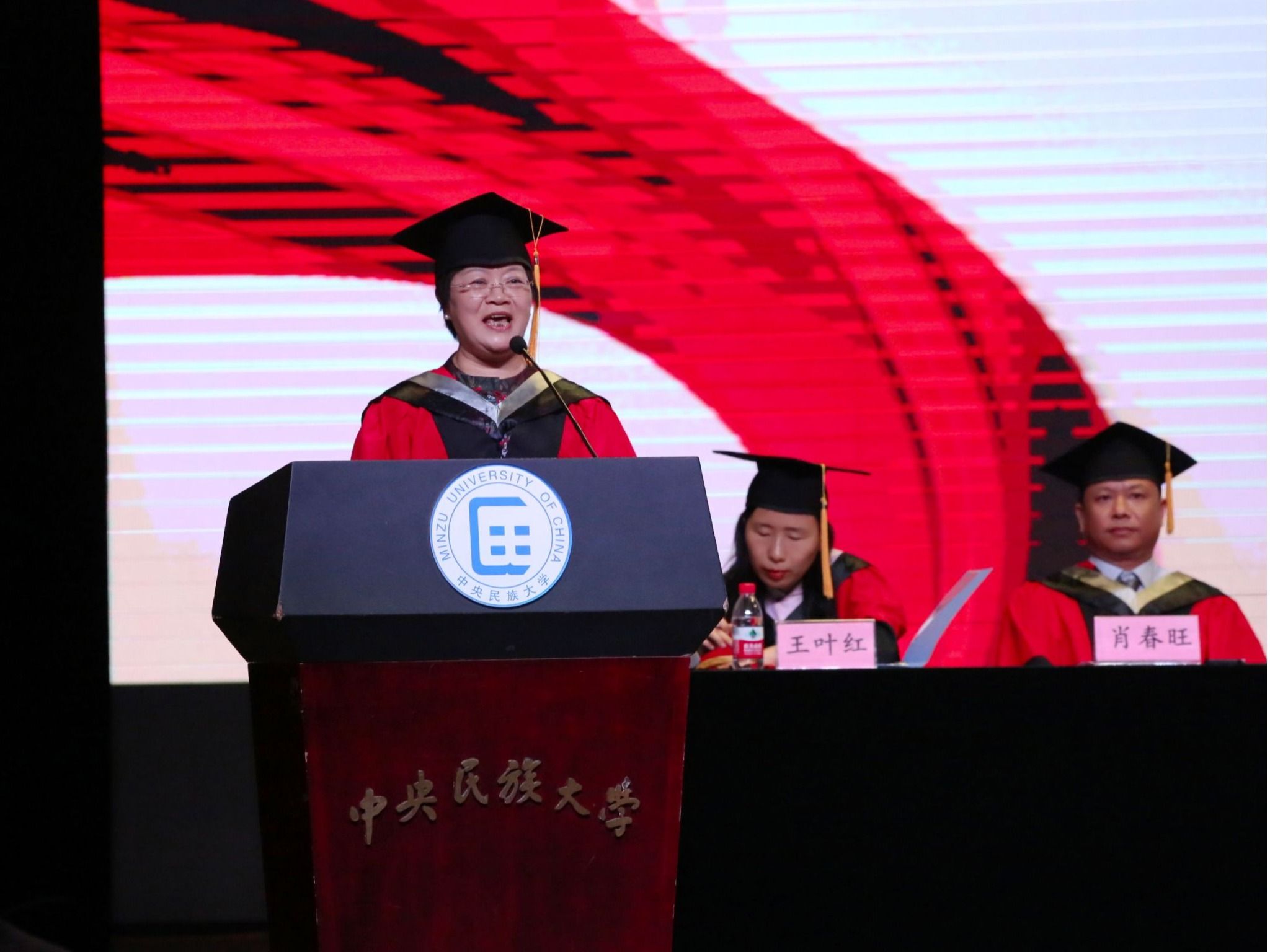 本科毕业生代表黄沁同学回顾了自己在民大的成长经历,她表示作为民大生环学子会始终铭记“青春如火,超越自我”的口号,践行“美美与共,知行合一”的校训,将所学所获运用到全面建设社会主义现代化国家的火热实践中去。