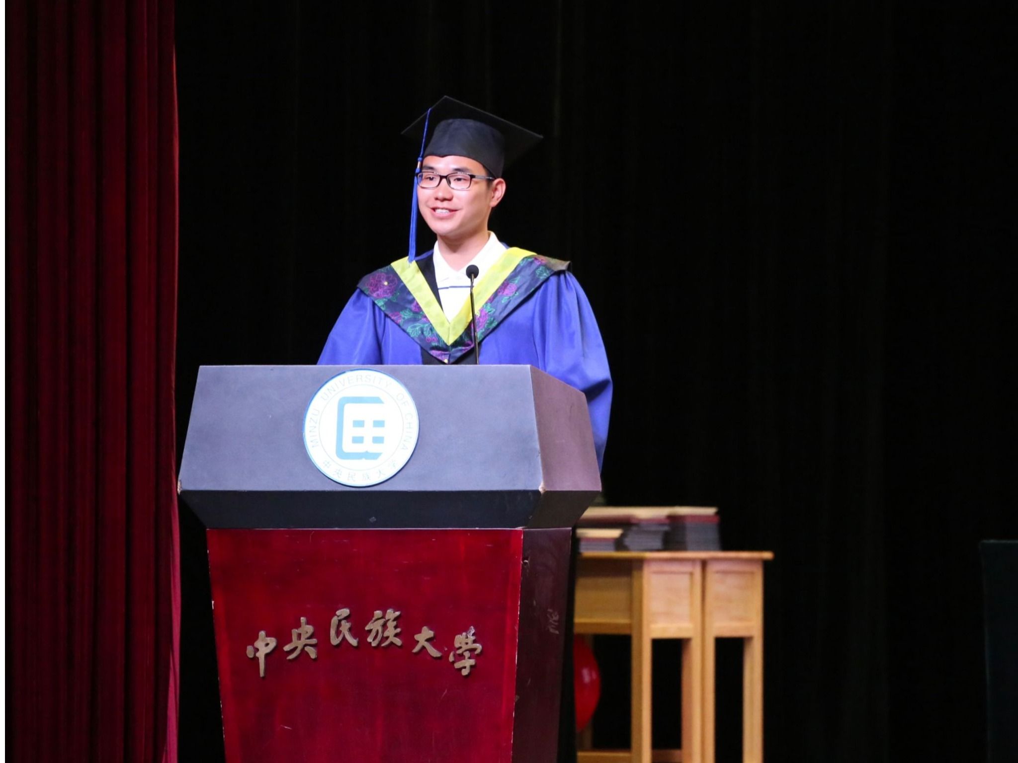硕士毕业生代表孙煜璨同学回顾了在民大、在生环努力奋斗的点点滴滴,他感恩老师们一丝不苟的悉心指导与无微不至的关心照顾,祝福生环学子继续高高地擎起理想的火炬,在祖国各地燃起生生不息的力量。