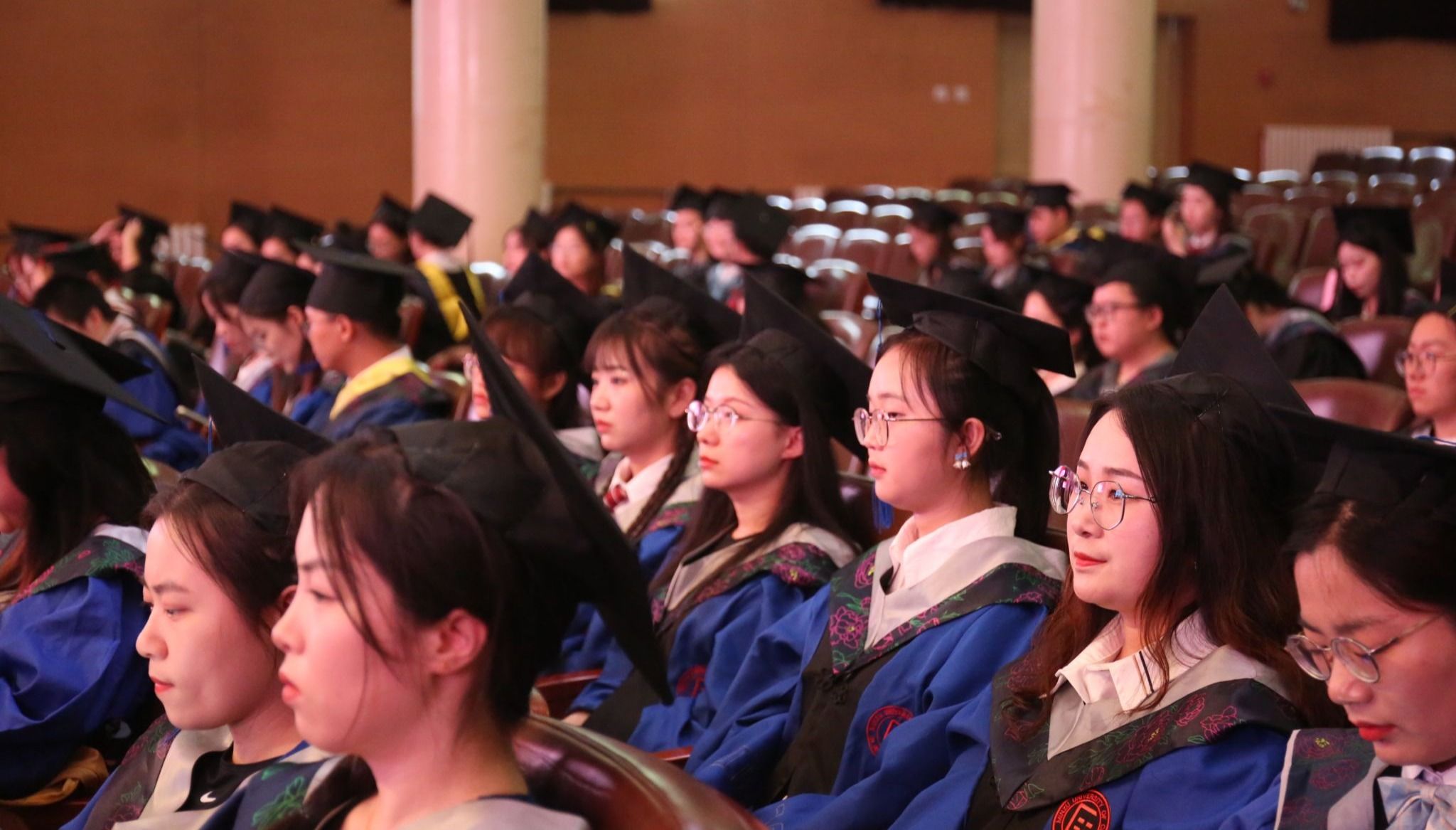 典礼最后,出席会议的全体老师为毕业生颁发荣誉证书、拨穗正冠、授予学位证书并合影留念。