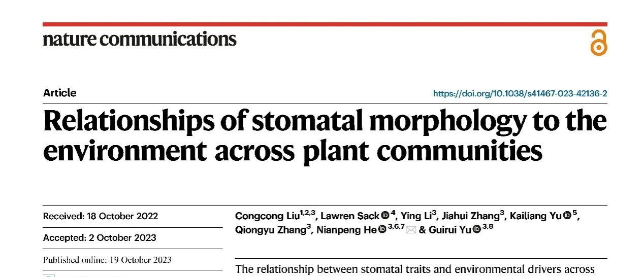 气孔——作为植物重要的功能性状影响着植物的适应和功能,气孔的成功演化是植物定居陆地生态系统的关键因素之一。近日,公司bv伟德青年教师刘聪聪副教授在植物叶片气孔形态特征的研究取得了重要成果,论文以“Relationships of stomatal morphology to the environment across plant communities”为题于2023年10月19日在线发表于Nature子刊《Nature Communications》上。论文链接:https://www.nature.com/articles/s41467-023-42136-2。