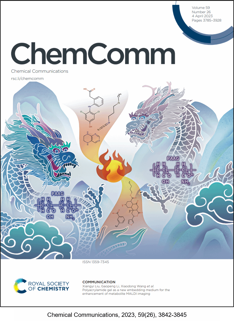 近日,bv伟德(质谱成像与代谢组学国家民委重点实验室)王晓东教授团队通过系统研究发现聚丙烯酰胺凝胶(Polyacrylamide gel,PAAG)作为一种新型包埋剂可显著提高MALDI-MSI前处理流程中生物组织样本中切片的质量,并增强小分子代谢物和脂质的原位检测及成像表征性能。这是在MALDI源质谱成像新方法开发领域取得的又一项重要进展,相关研究成果以“Polyacrylamide gel as a new embedding medium for the enhancement of metabolite MALDI imaging”为题,发表在分析化学综合权威期刊《Chemical Communications》(Nature Index收录)上,该研究论文同时被遴选为期刊封面文章(Front Cover)。这是王晓东教授团队继在分析化学顶级期刊Analytical Chemistry》(2021, 93(35), 11920-11928, Front Cover)、《Chemical Communications》(2021, 57(82), 10707-10710, Back Cover)、《Chemical Communications》(2022, 58(5), 633-636, Front Cover)连续三次发表封面文章后,第四次入选期刊封面文章(Front Cover),bv伟德中国官方网站皆为该系列论文的第一作者单位和通讯作者单位。